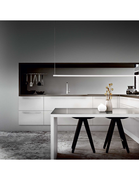 Roseta, moldura e suporte de cabos em metal pintado mate. Difusor em policarbonato opala. Cabo de PVC transparente. Cores: branco ou preto.