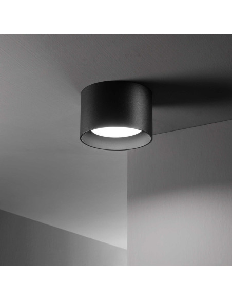 Com corpo compacto em alumínio preto mate, este foco saliente de teto é perfeito para corredores, hall de entrada, zonas de circulação, áreas comerciais, ou projetos de hotelaria que valorizam a funcionalidade com estética limpa.