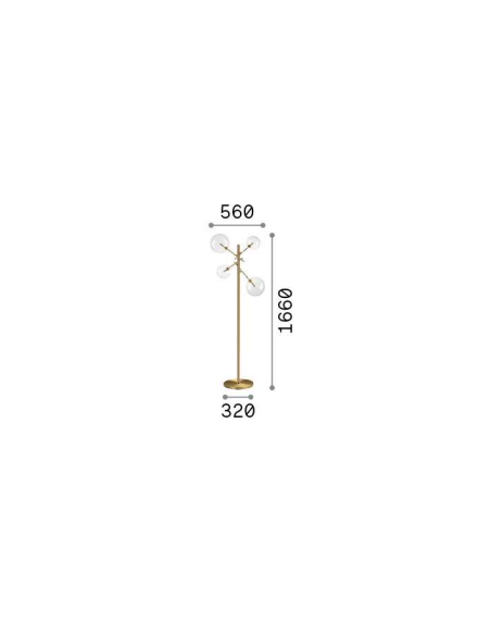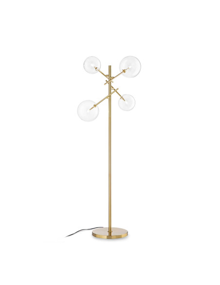 Candeeiro de pé dourado com esferas em vidro opalino. Uma peça decorativa marcante para interiores modernos ou hotelaria de luxo.