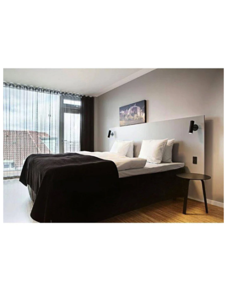O design do Aplique MIB 6 destaca-se pelo seu corpo compacto e pelo difusor integrado que distribui a luz de forma homogénea, criando um efeito de iluminação indireta que realça a decoração sem causar ofuscamento. É uma excelente escolha para projetos de hotelaria e residências que valorizam a combinação entre eficiência energética e estética refinada.