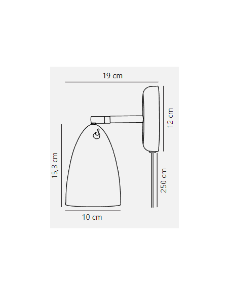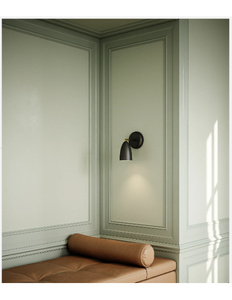 Com estrutura em metal preto mate, difusor fixo em forma de sino e interruptor integrado na base, é ideal como luz de leitura em cabeceiras de cama, iluminação de apoio em corredores, ou luz decorativa em espaços de hotelaria e habitação moderna.