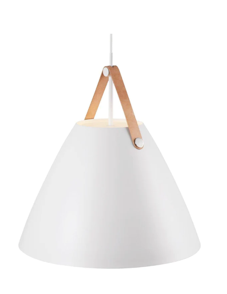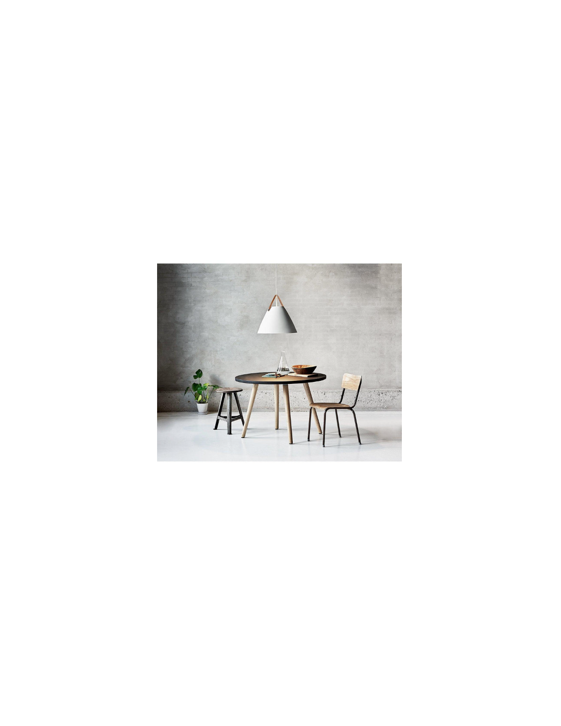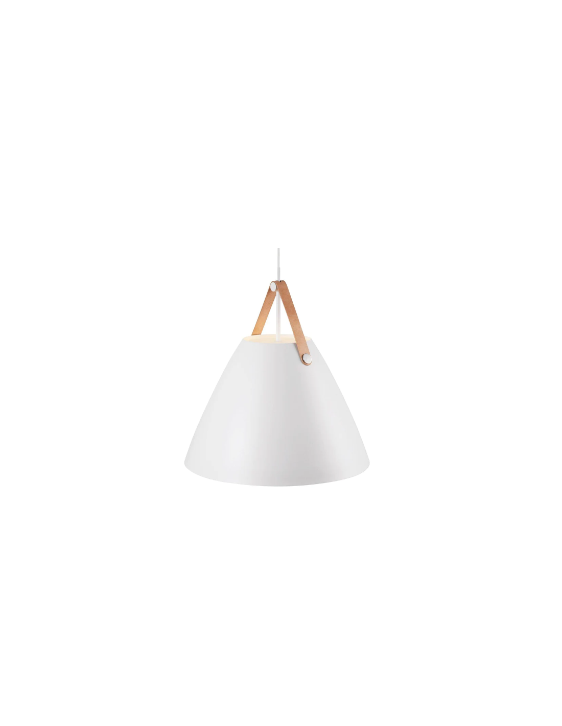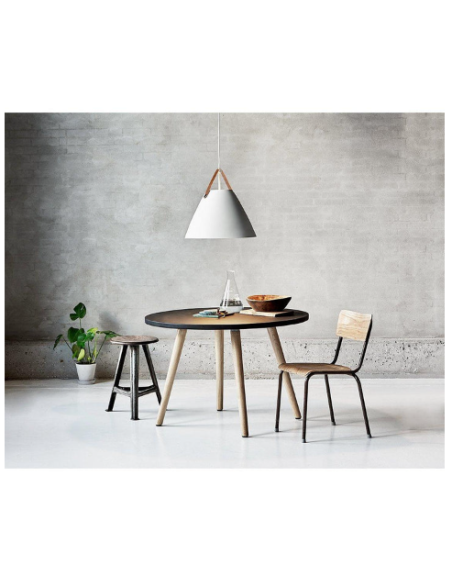 A Suspensão STRAP 48 da Nordlux destaca-se pelo seu equilíbrio entre design industrial e um toque moderno e leve, graças ao detalhe do suporte em couro verdadeiro.
