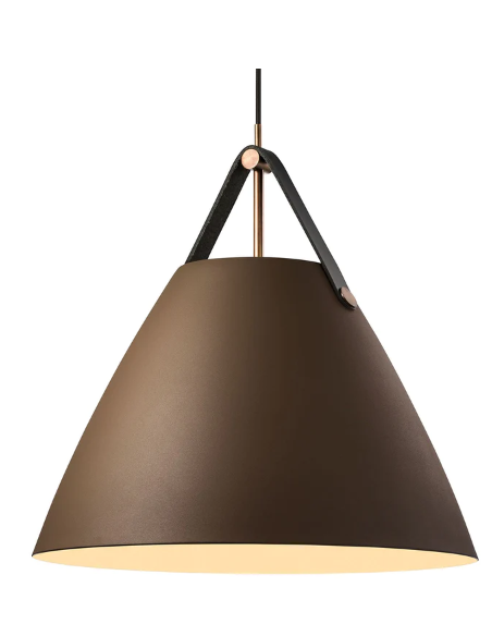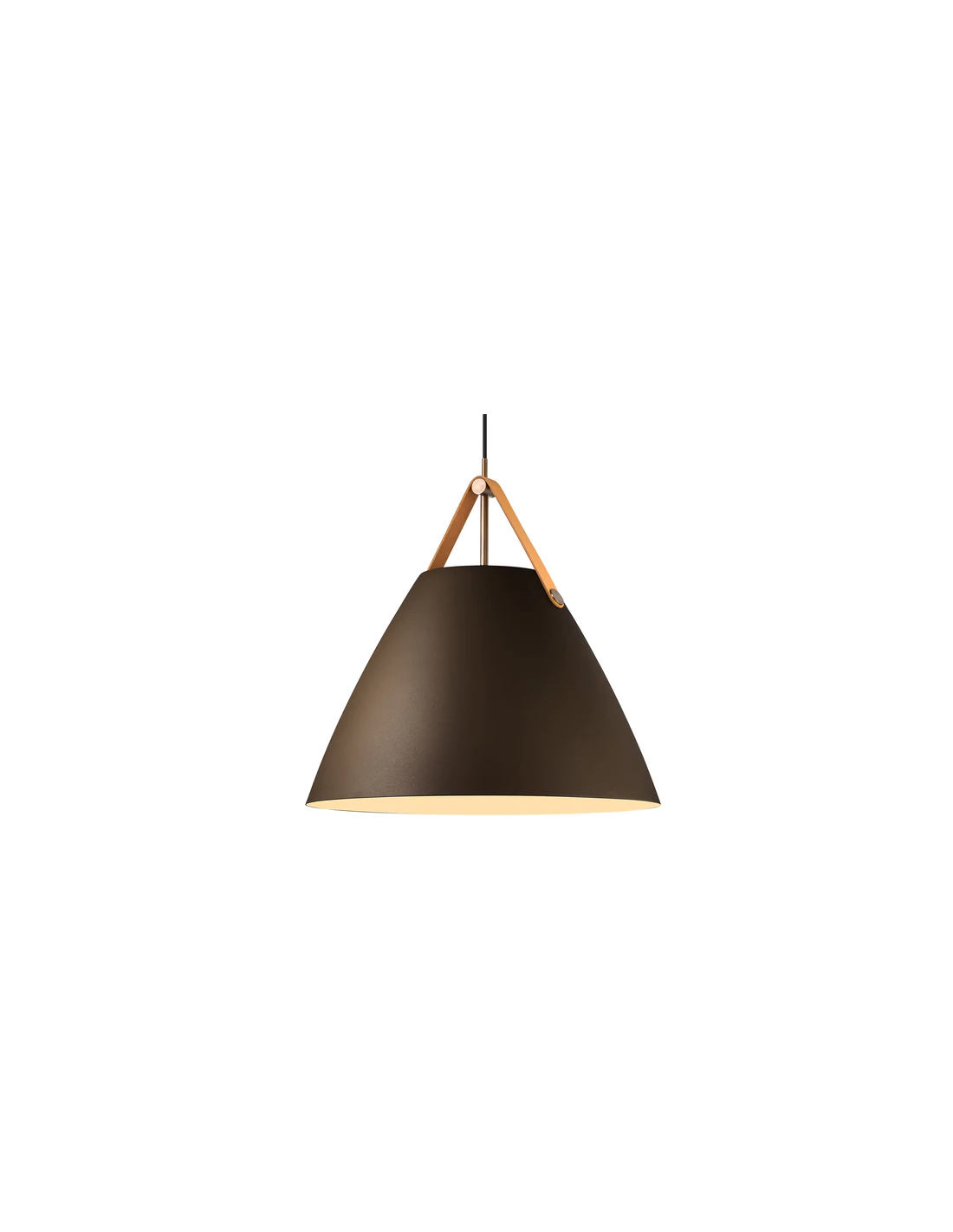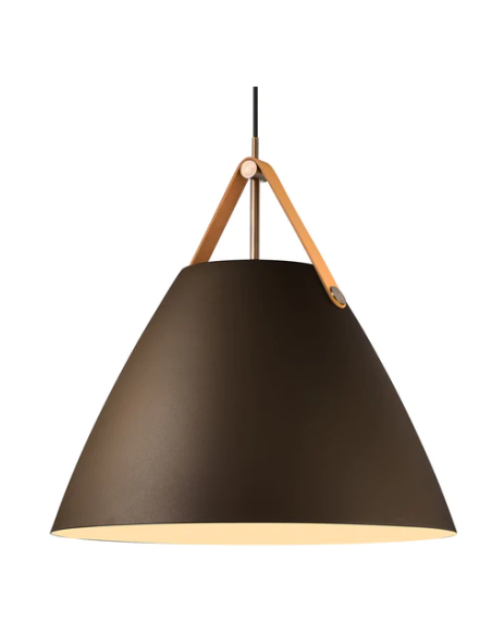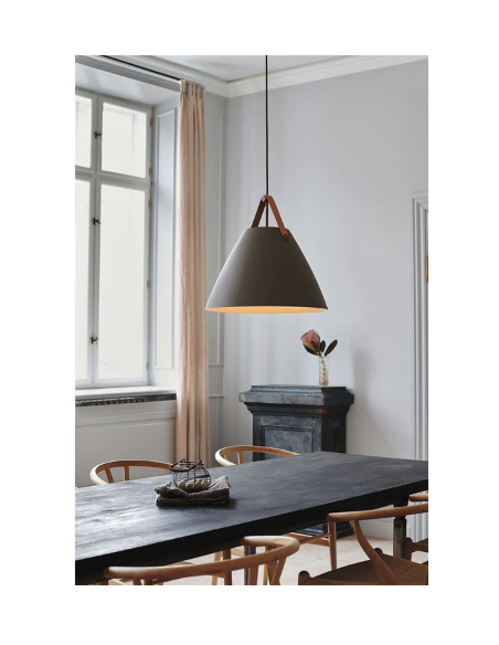 A Suspensão STRAP 48 da Nordlux destaca-se pelo seu equilíbrio entre design industrial e um toque moderno e leve, graças ao detalhe do suporte em couro verdadeiro.