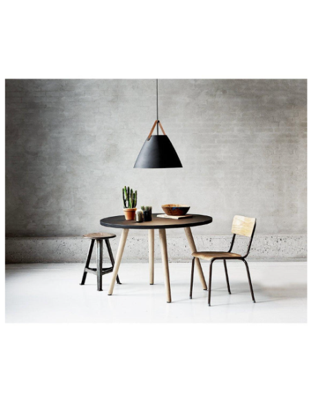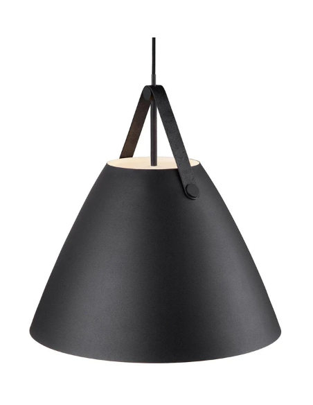 A Suspensão STRAP 48 da Nordlux destaca-se pelo seu equilíbrio entre design industrial e um toque moderno e leve, graças ao detalhe do suporte em couro verdadeiro.