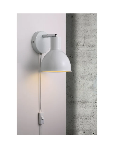 O corpo metálico está disponível em tons neutros como preto ou branco mate, garantindo integração fácil com qualquer paleta de cores. O foco articulado permite direcionar a luz conforme necessário, sendo ideal como luz de leitura junto à cama, apoio visual em zonas de trabalho, ou até como iluminação secundária em corredores ou salas.