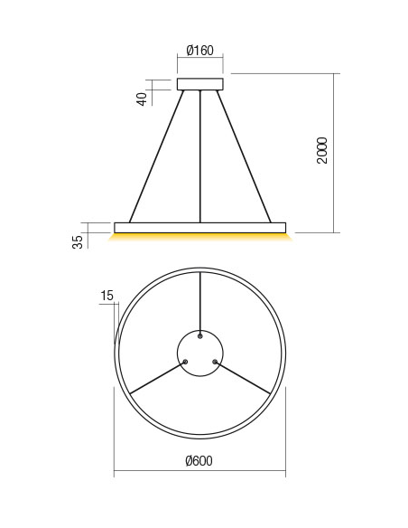 Suspensão em formato de anel, disponível em branco, preto ou dourado, com 60, 80, 100 e 120 cm