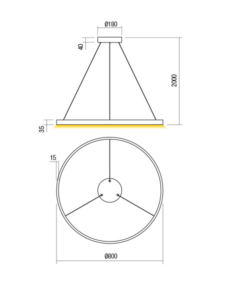 Suspensão em formato de anel, disponível em branco, preto ou dourado, com 60, 80, 100 e 120 cm