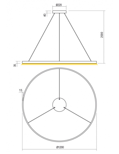 Suspensão em formato de anel, disponível em branco, preto ou dourado, com 60, 80, 100 e 120 cm