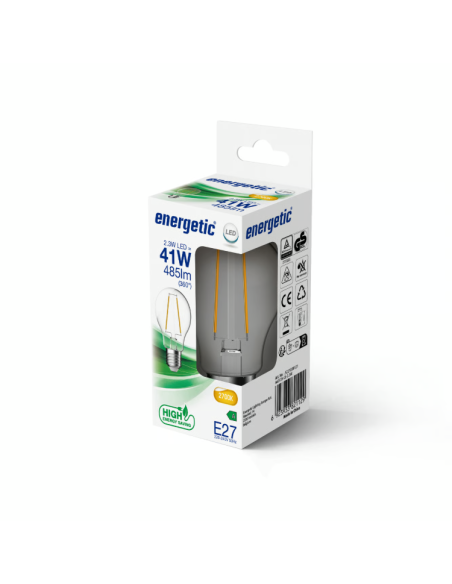 Lâmpada A60 transparente com casquilho E27, de Classe Energética A, ideal para quem procura poupança de energia e durabilidade. Com vida útil prolongada e luz branca quente, oferece uma iluminação confortável e eficiente. O seu amplo ângulo de feixe garante uma distribuição uniforme da luz em todo o ambiente, sendo perfeita para uso doméstico ou profissional.