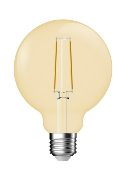 Lâmpada decorativa G95 com casquilho E14 e vidro âmbar, ideal para criar ambientes com um estilo vintage e sofisticado. Emite uma luz quente e suave de 2500K, perfeita para proporcionar conforto visual. Regulável, adapta-se a diferentes atmosferas, sendo ideal para salas, quartos, cafés ou espaços decorativos.