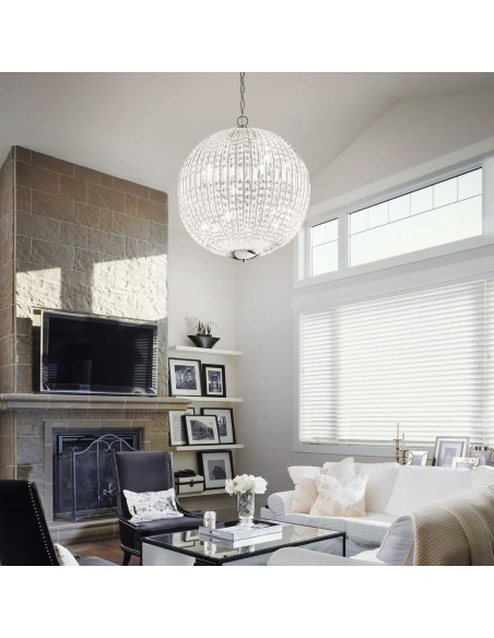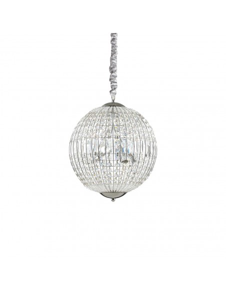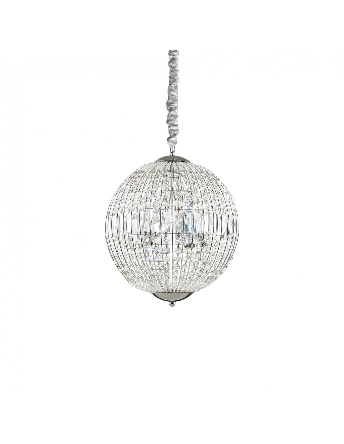 Estrutura metálica cromada. Difusor com elementos decorativos octogonais e retangulares em cristal lapidado.