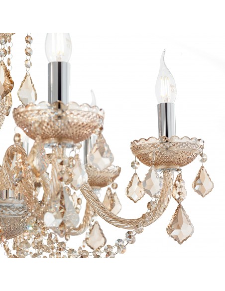 Materiais: Metal (cromado) | Vidro (âmbar) | Cristal (âmbar).