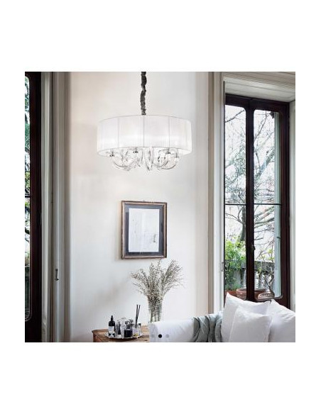 A Suspensão SWAN SP3 da Ideal Lux é uma peça decorativa marcante que alia elegância clássica a um design fluido e orgânico, inspirado na delicadeza das formas naturais.