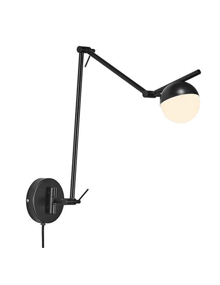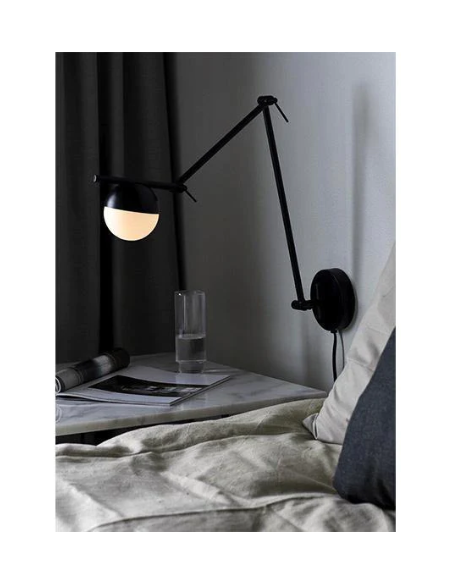 A peça combina uma estrutura metálica elegante, em preto ou dourado, com um globo esférico em vidro opalino, que emite uma luz difusa ideal para criar ambientes relaxantes.